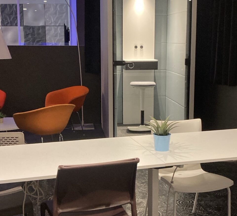 Además, nuestros puestos individuales y compartidos están equipados con sillas ergonómicas, iluminación adecuada y mesas de trabajo confortables, pensadas para el bienestar durante largas jornadas. Contamos también con oficinas privadas, cabinas insonorizadas y salas de reuniones completamente equipadas, todo dentro del mismo espacio.